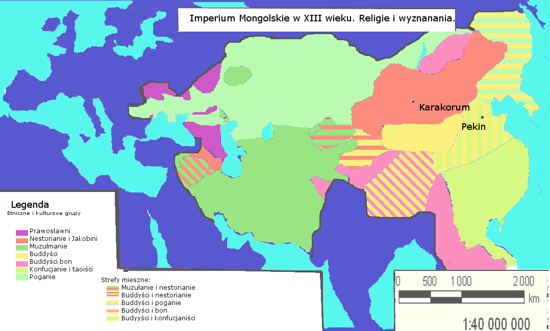 W Imperium Mongolskim panowała niespotykana w Europie tolerancja religijna. Żyło tu dużo przedstawicieli wielu religii. Pod sztandarami dowódców byli wszelcy wyznawcy.